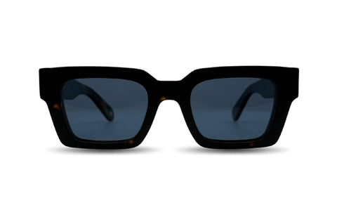 Featuring a havana frame, blue colored lens and subtle gold inscription logo effects.