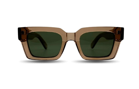 Featuring a transparent brown frame, green G15 colored lens and subtle gold inscription logo effects.